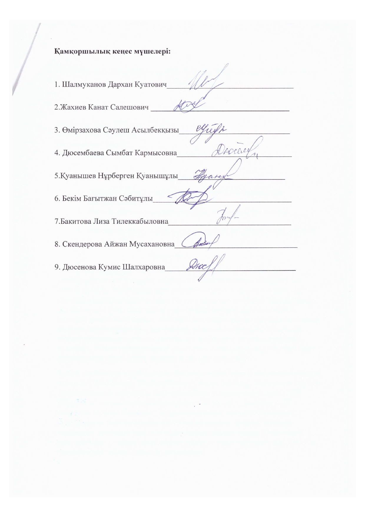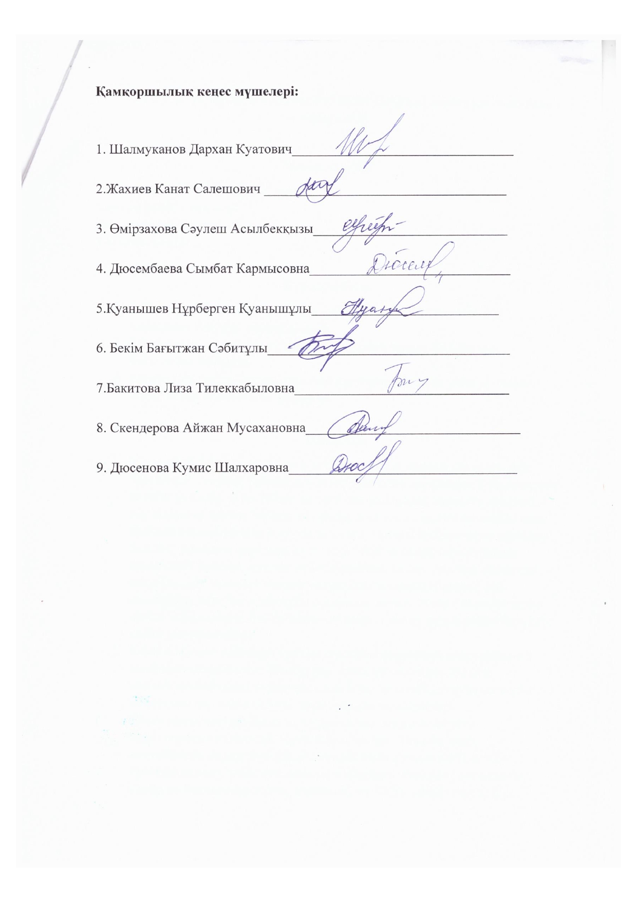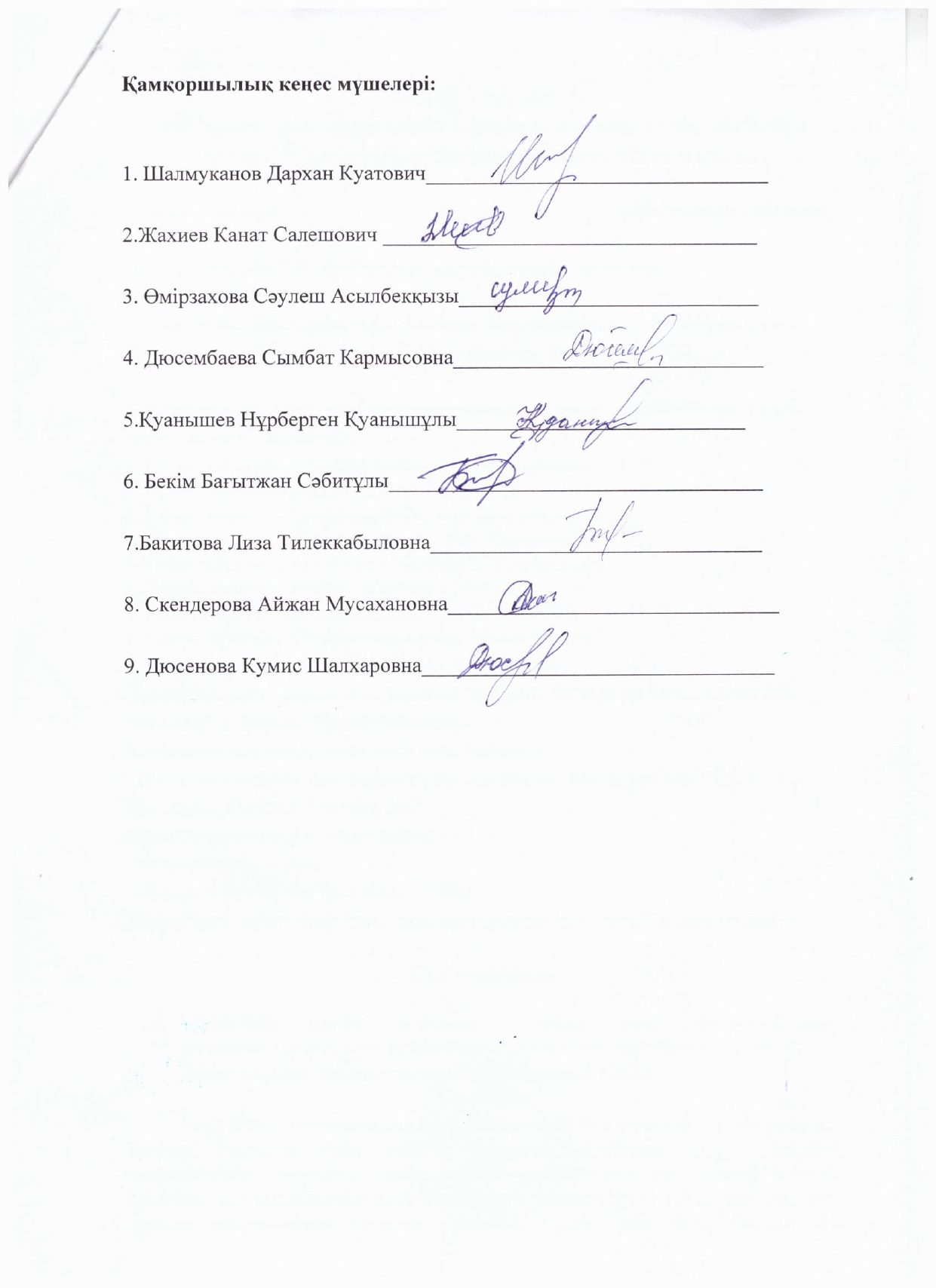 - Касымқанова С- кеңес мүшесі