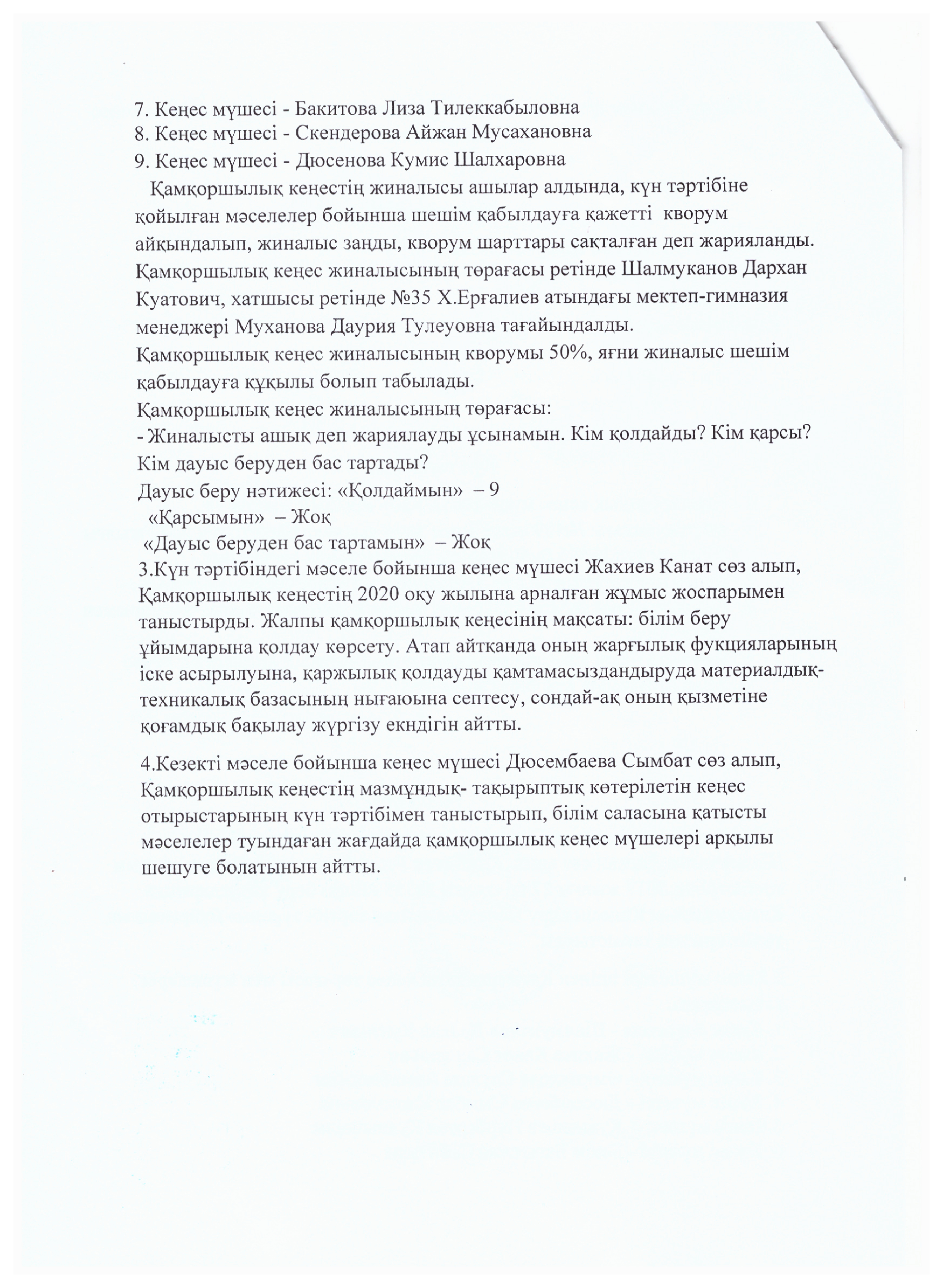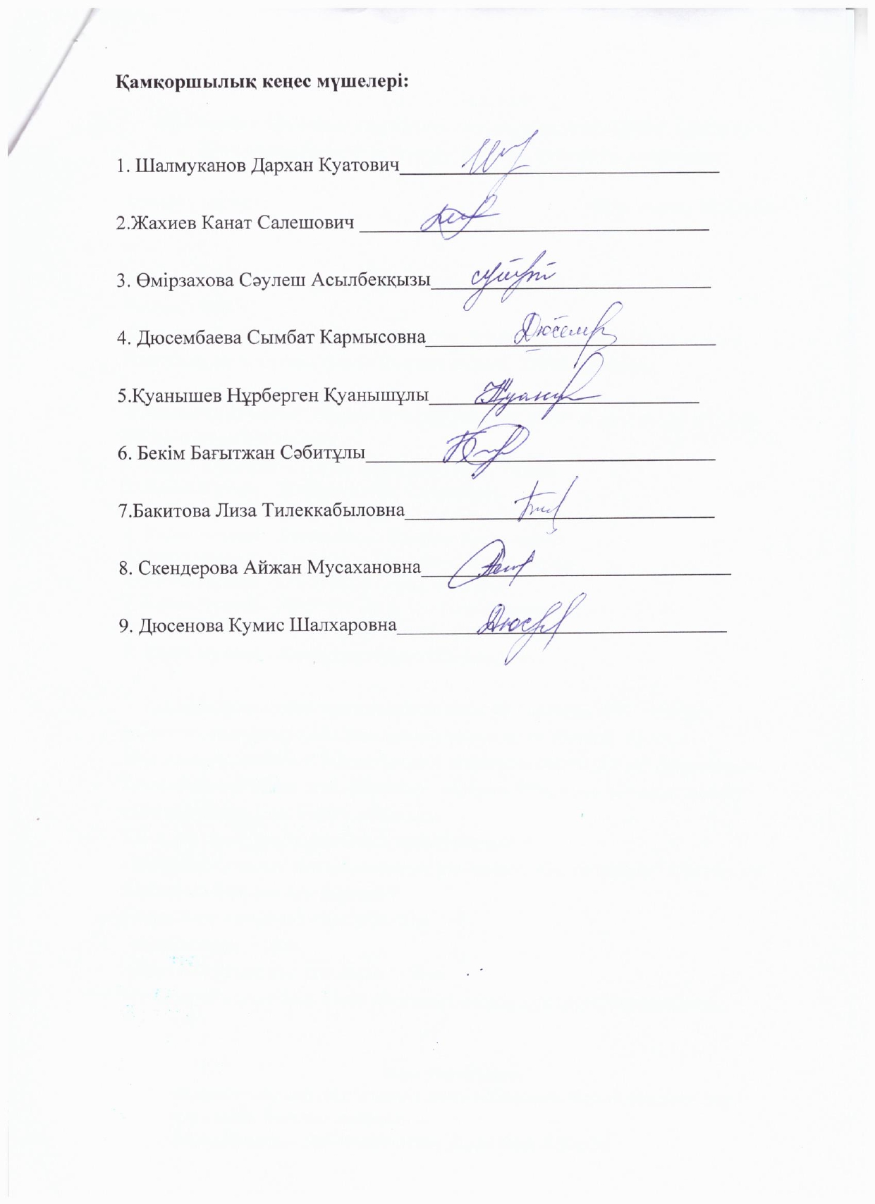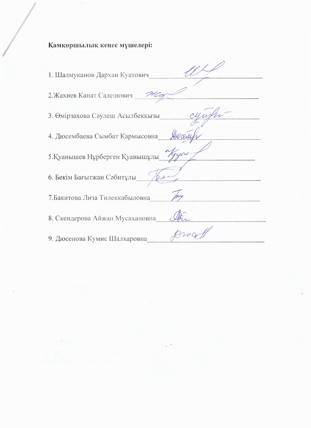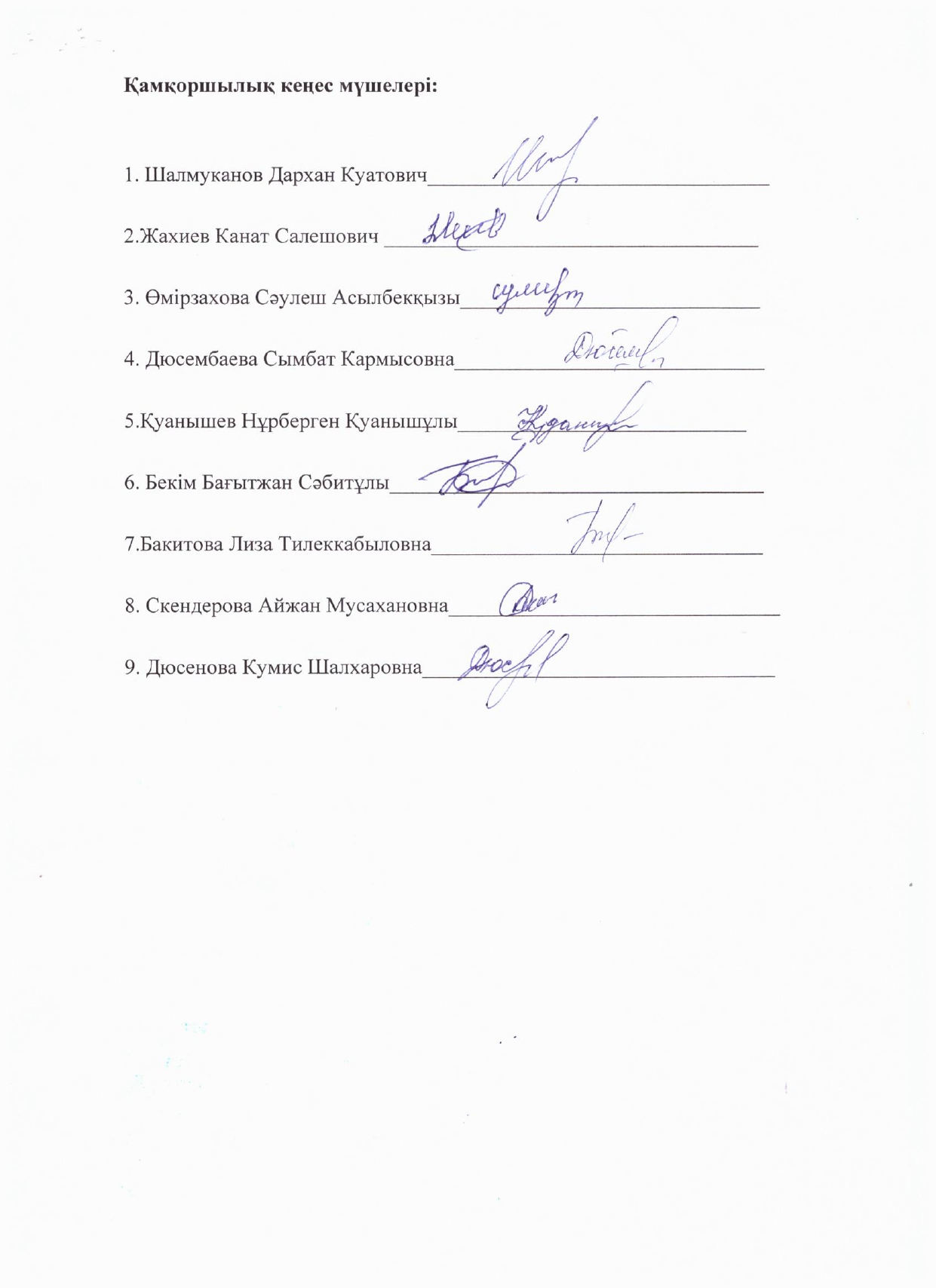 - Касымқанова С- кеңес мүшесі